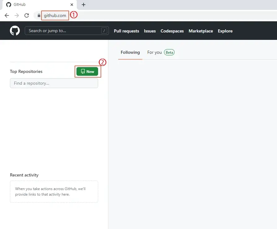 깃허브에 접속해 로그인 한 다음 New 버튼을 눌러 리포지토리를 만듭니다.