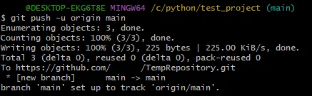 다시 git bash로 돌아가보면 push가 성공적으로 수행된 것을 확인할 수 있습니다.