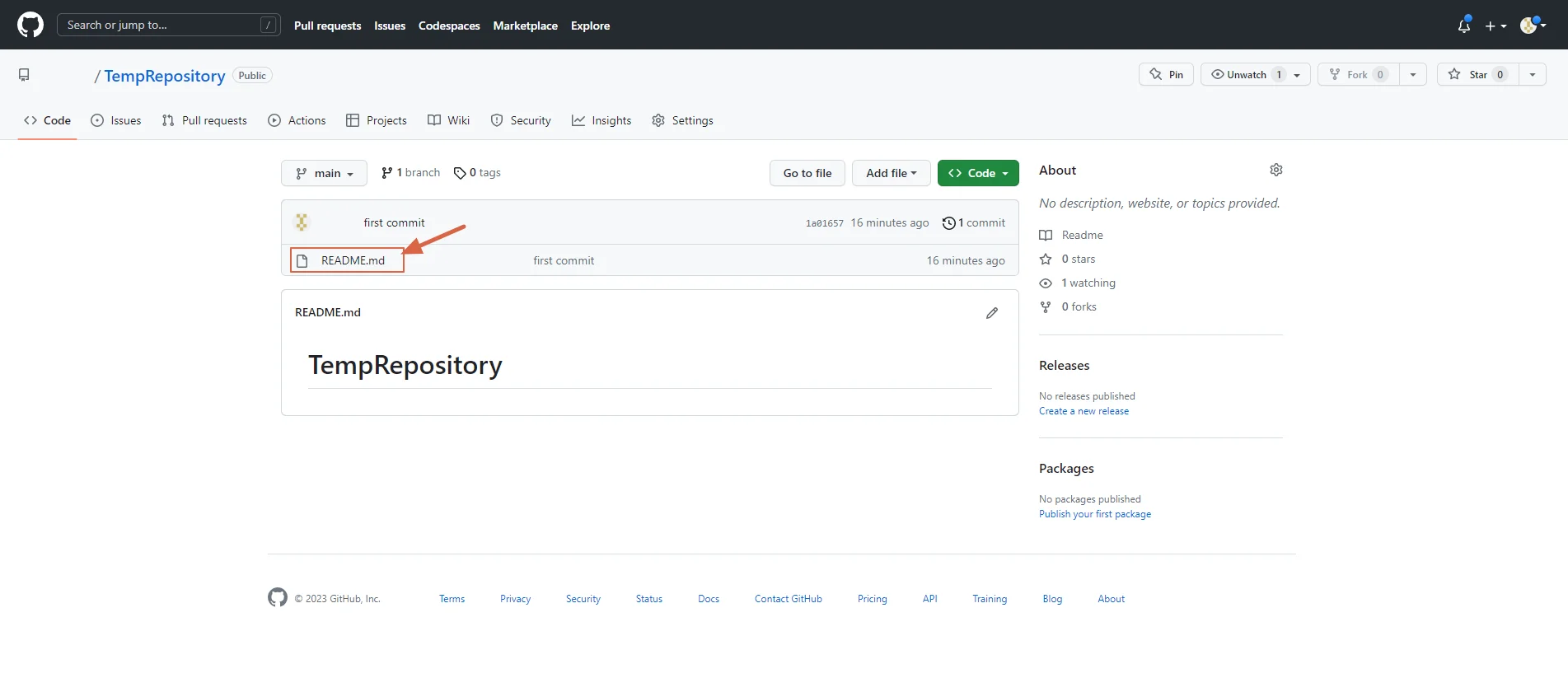 마지막으로 깃허브 리포지토리에 돌아가보면 README.md 파일이 잘 push 되어 있다는 것을 확인할 수 있습니다.