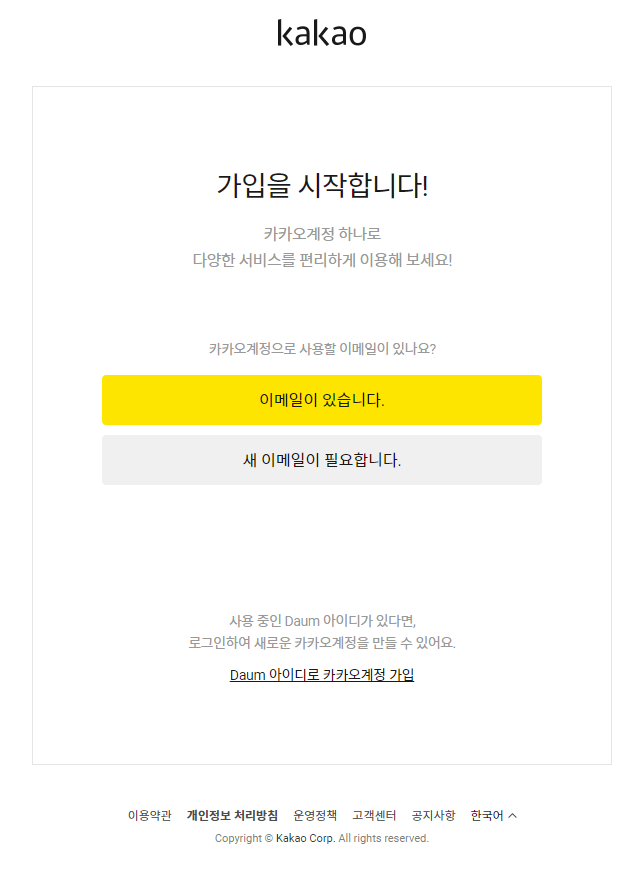 아래 페이지에서 카카오 계정을 만들 수 있습니다.
